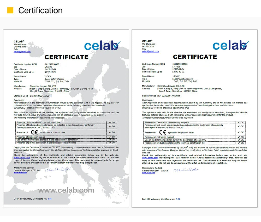 - Сертификация: CE EN 207: 2009+ AC 2011, RoHS